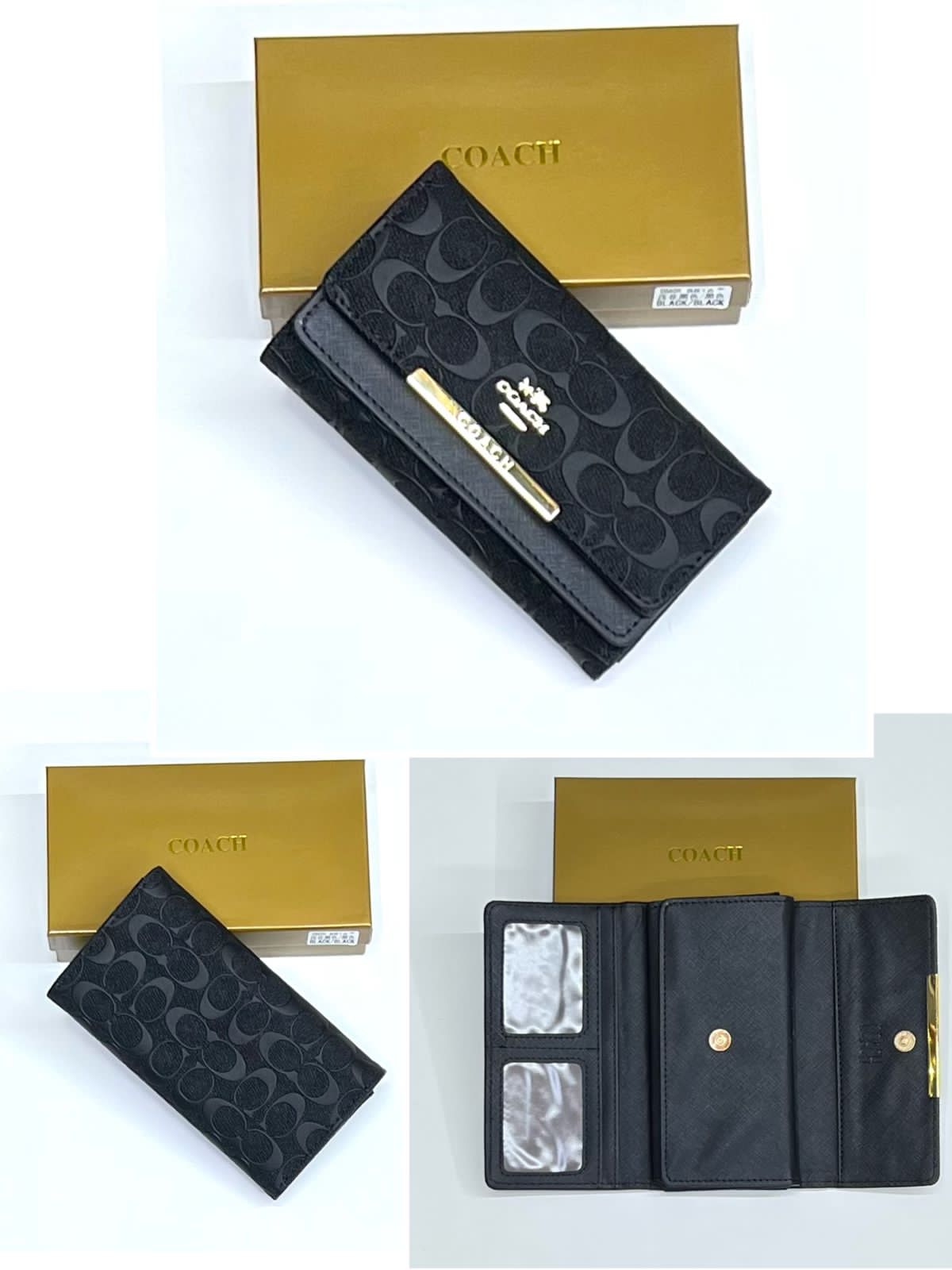 Pure Black Coach Double Flap Purse/Wallet