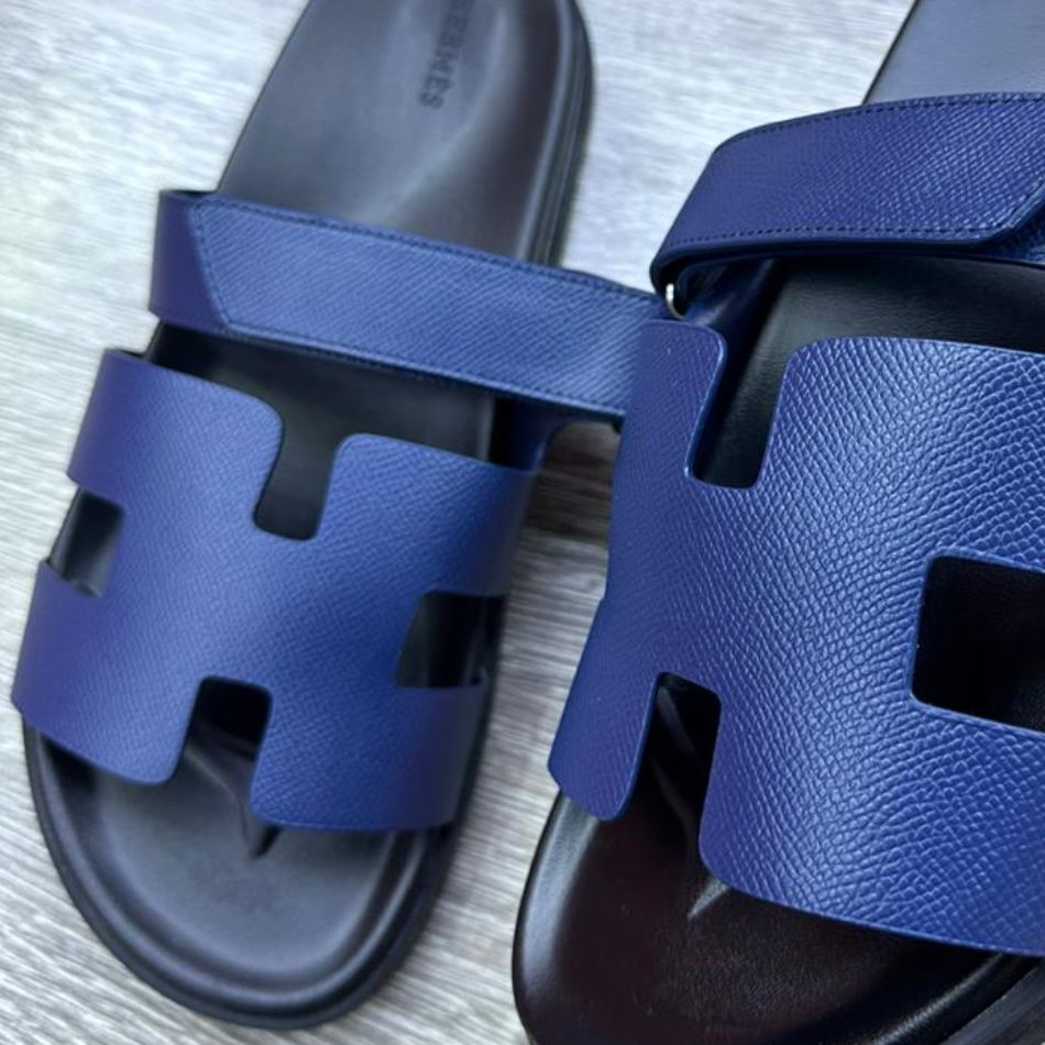 Hermès Pre-Loved Chypre sandal- Blue / Complete inclusion “ Certificate-Original Card