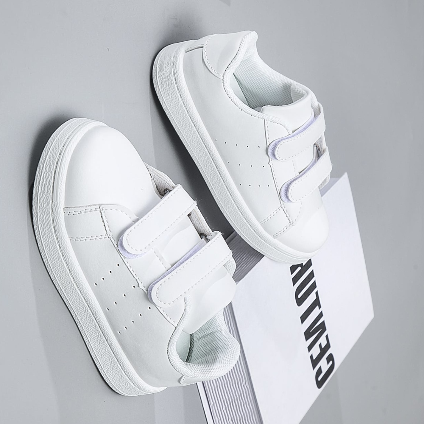 adidas Kids Pure White shoes With Hook And Loop Clouser