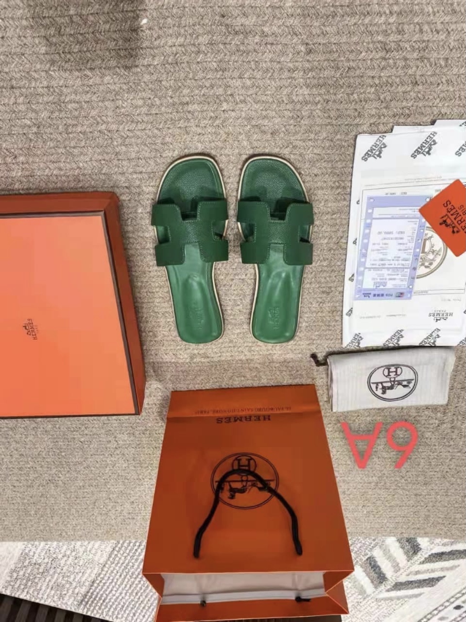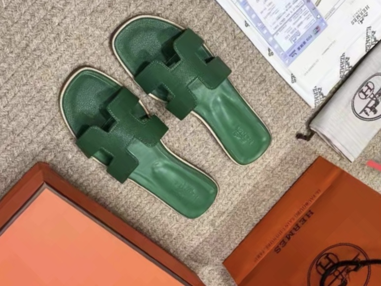 Original Hermés - Oran Sandal / Green ( Certificate-Paper Bag- Card-Original Box-Dust Bag)