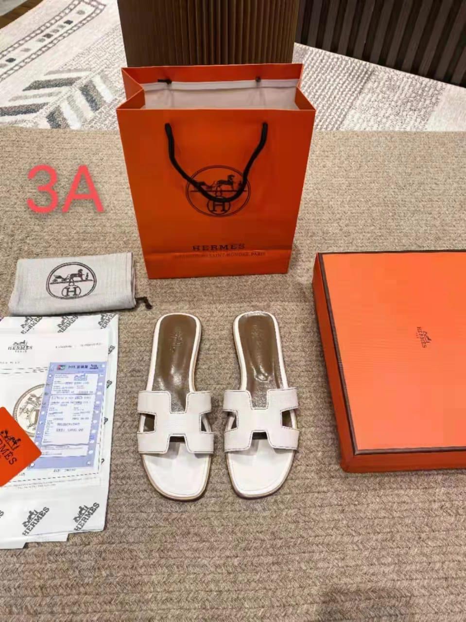 Original Hermés - Oran Sandal / White Brown ( Certificate-Paper Bag- Card-Original Box-Dust Bag)